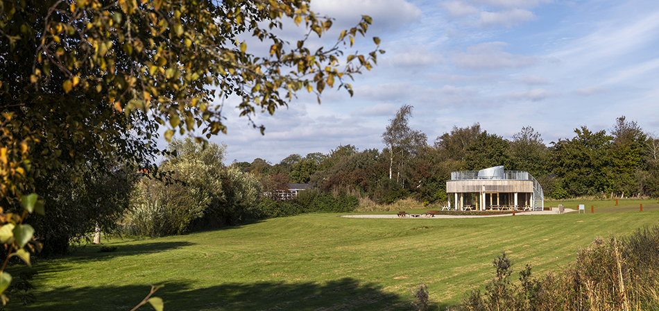Materialitet og konstruktionPavillonen er opført i robuste trækonstruktioner, hvor detaljeringen er udført med stor omhu. En rustik, lodret træbeklædning giver bygningen et taktilt og varmt udtryk, der harmonerer med omgivelserne. Den gennemgående brug af træ – både ude og inde – skaber materialemæssig kontinuitet og en oplevelse af helhed.