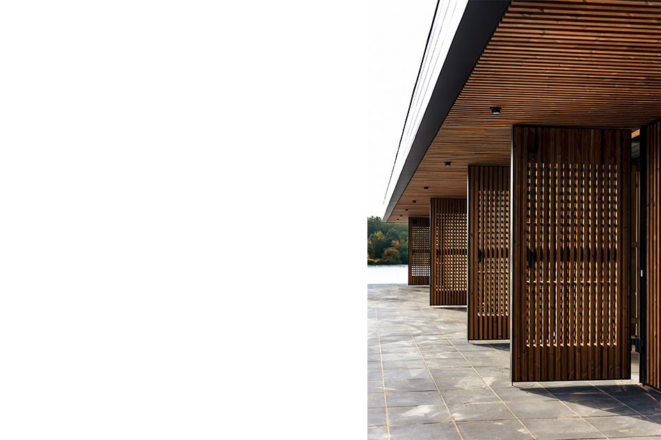 Huset fungerer både ude og inde, hvor funktionerne er arrangeret omkring et gårdmiljø der åbner sig op mod fjorden. Fra den nordlige stiforbindelse og ankomsten, er der indblik til gårdrummet og vandet.