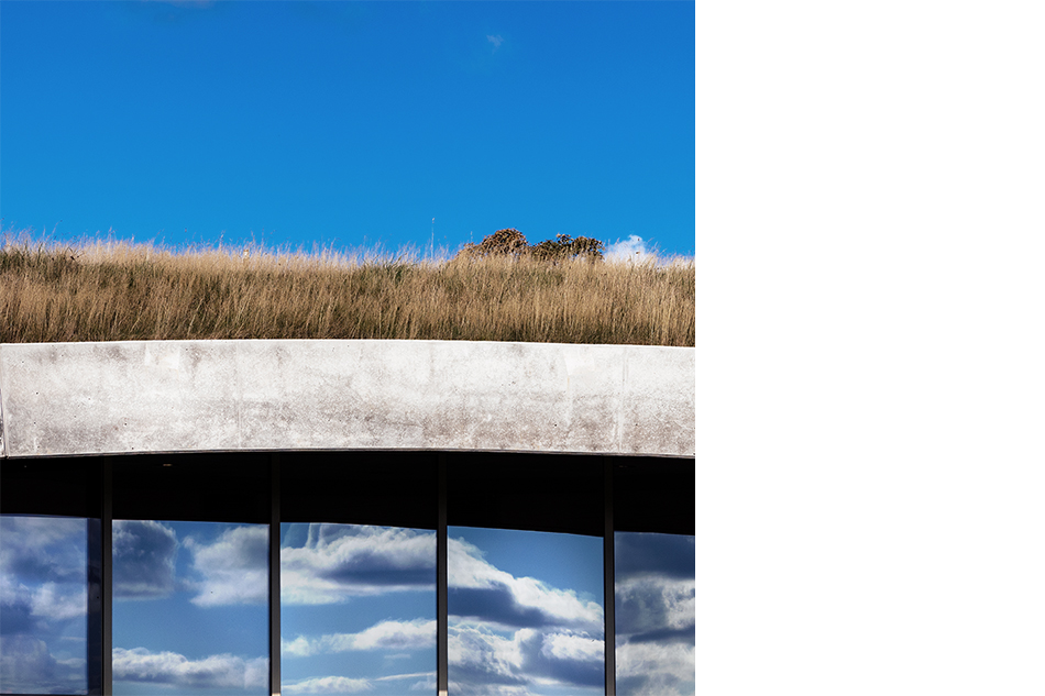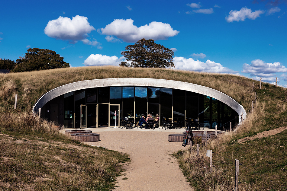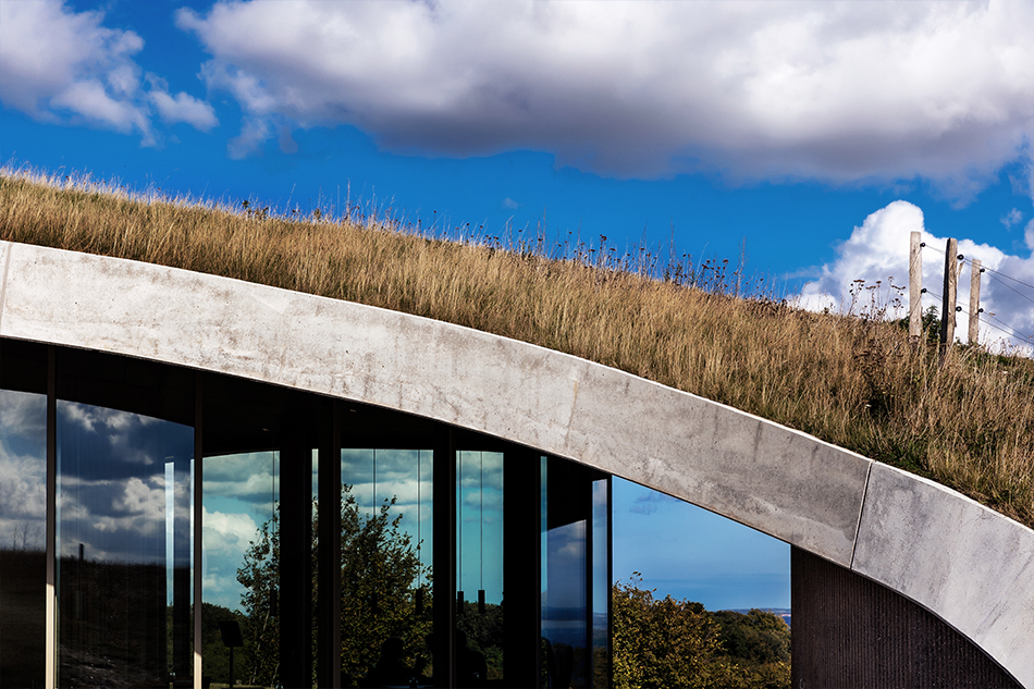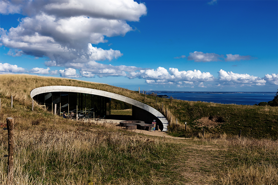 Bygningen ligger under det bølgende græslandskab. Indefra åbner udsigten over Lillebælt og den omkringliggende natur. Ovenpå og omkring bygningen, åbner de grønne enge sig, og giver de besøgende mulighed for at se helt til Fyn over Lillebælt, samt langt ind over Sønderjylland mod vest.