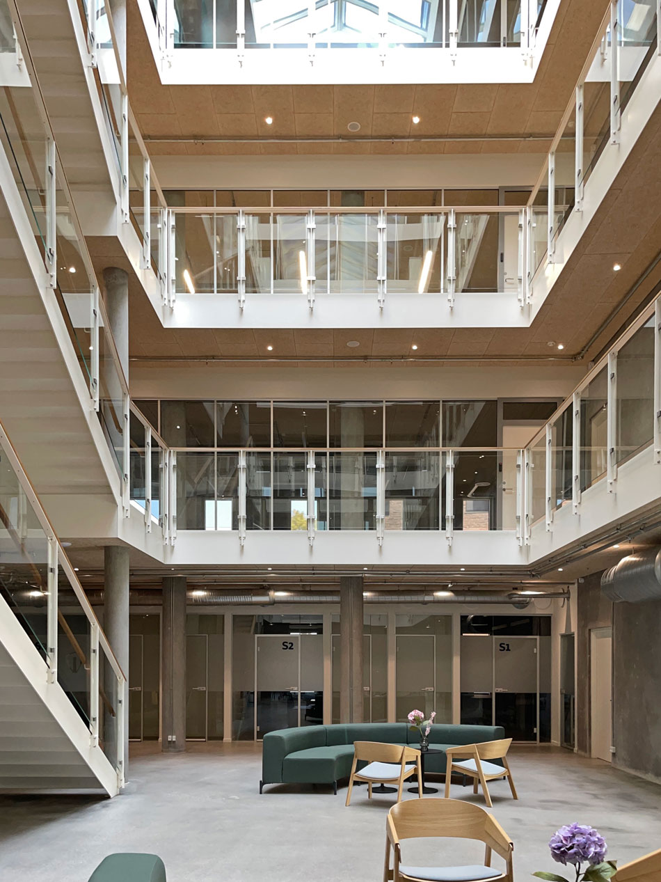 Materiale-valgene er enkle – og udtrykket er råt, med inspiration fra de ældre transformerede produktionsbygninger, hvor mange af tech-virksomhederne startede.