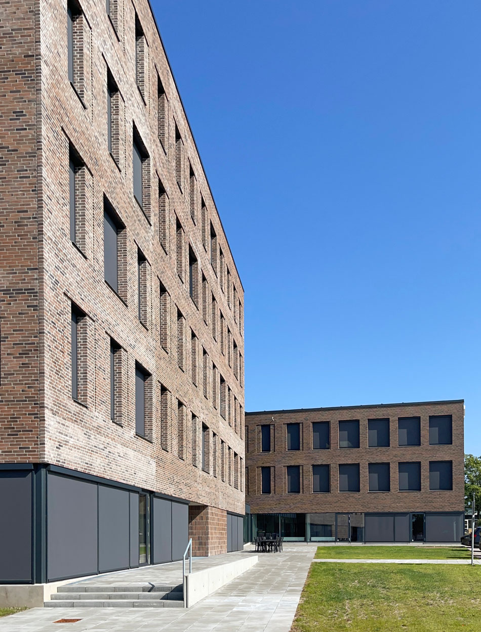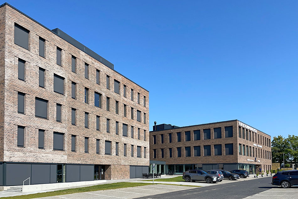 Vinduer i varierende bredder skaber dynamiske facader, der i udtryk skaber en samhørighed med nabobygningen Titan.