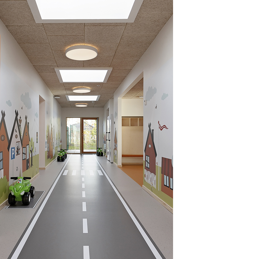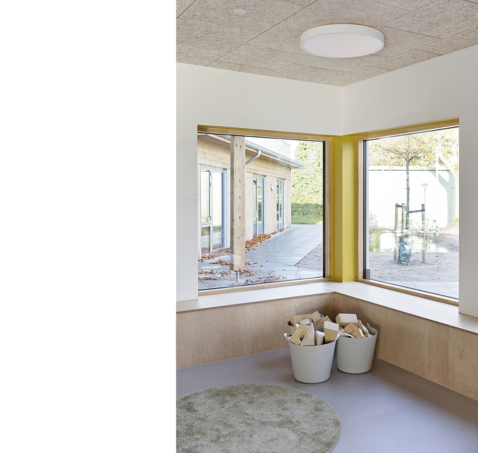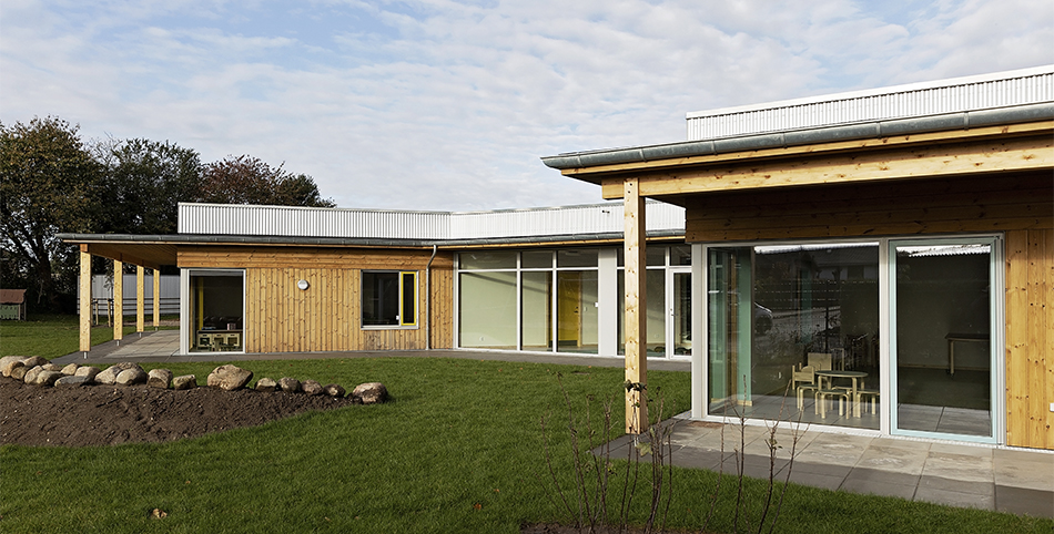 Institutionen er bygget op af 27 moduler i lette trækonstruktioner, alle monteret på punktfundamenter.