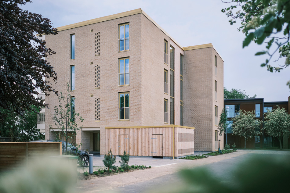 Et lavt CO2-aftrykBygningen er hovedsageligt opført i krydslamineret træ, også kendt som CLT, med en hybrid konstruktion af tegl og træbeklædning. Projektet har et lavt CO2-aftryk på 7,2 kg per kvadratmeter per år og er certificeret med både Svanemærket og DGNB Guld.