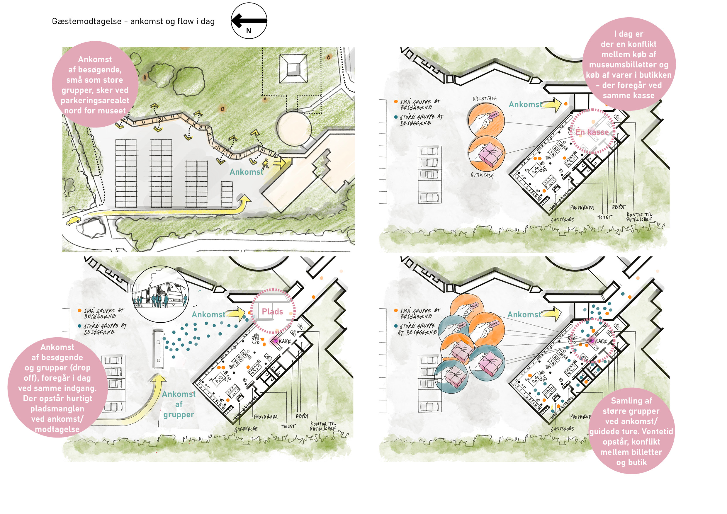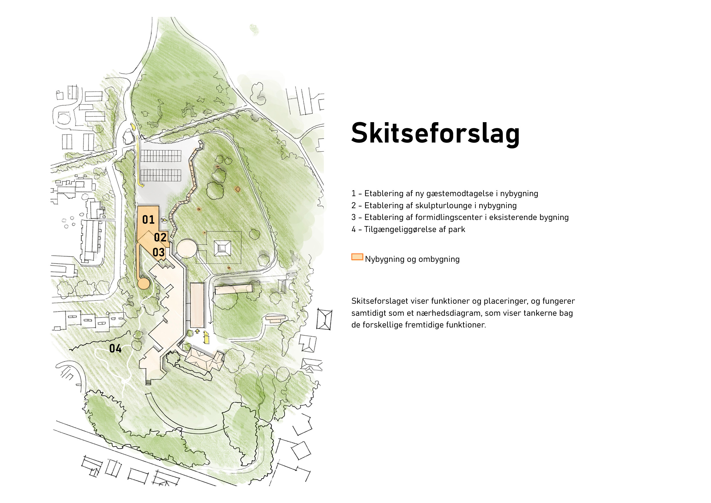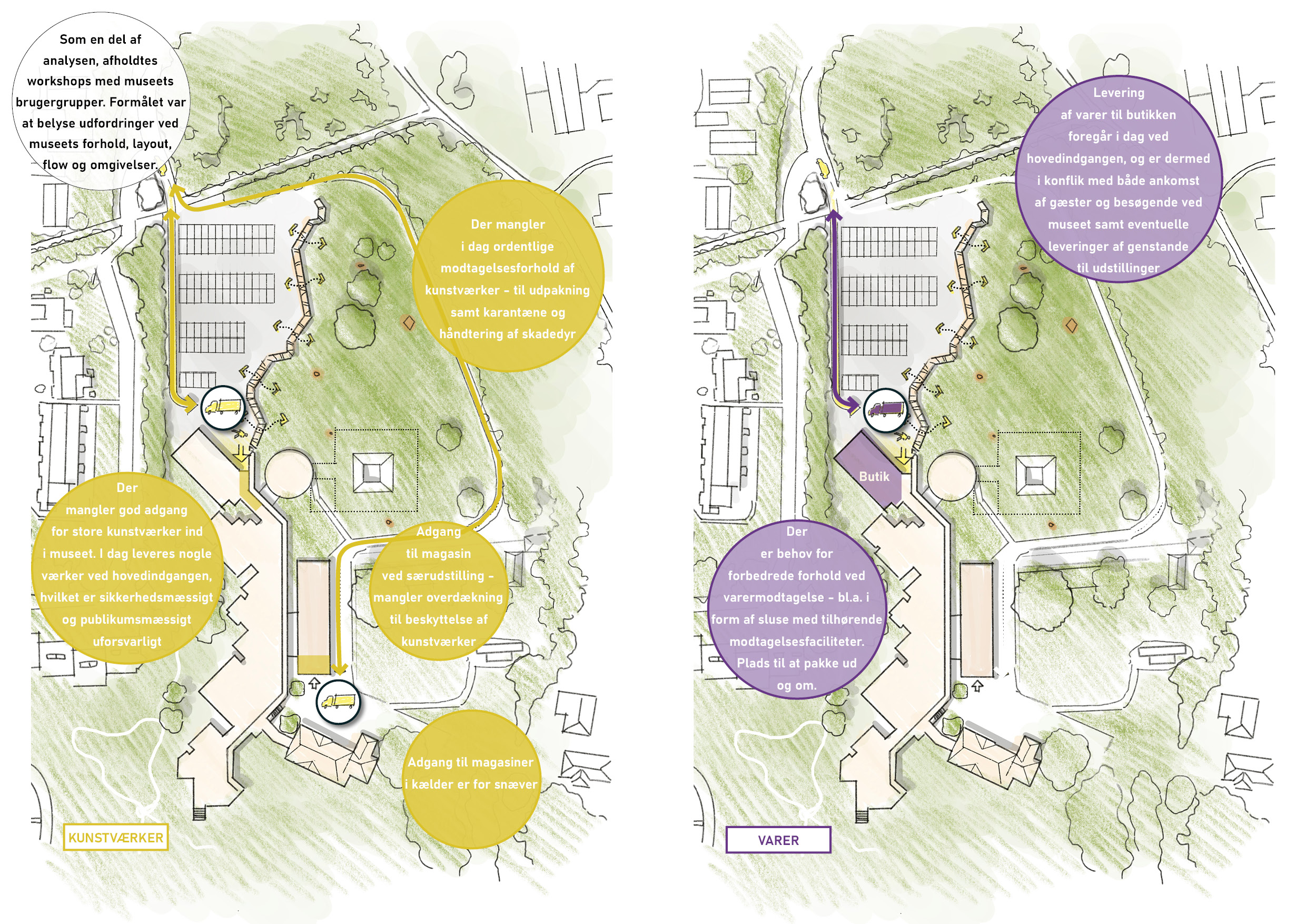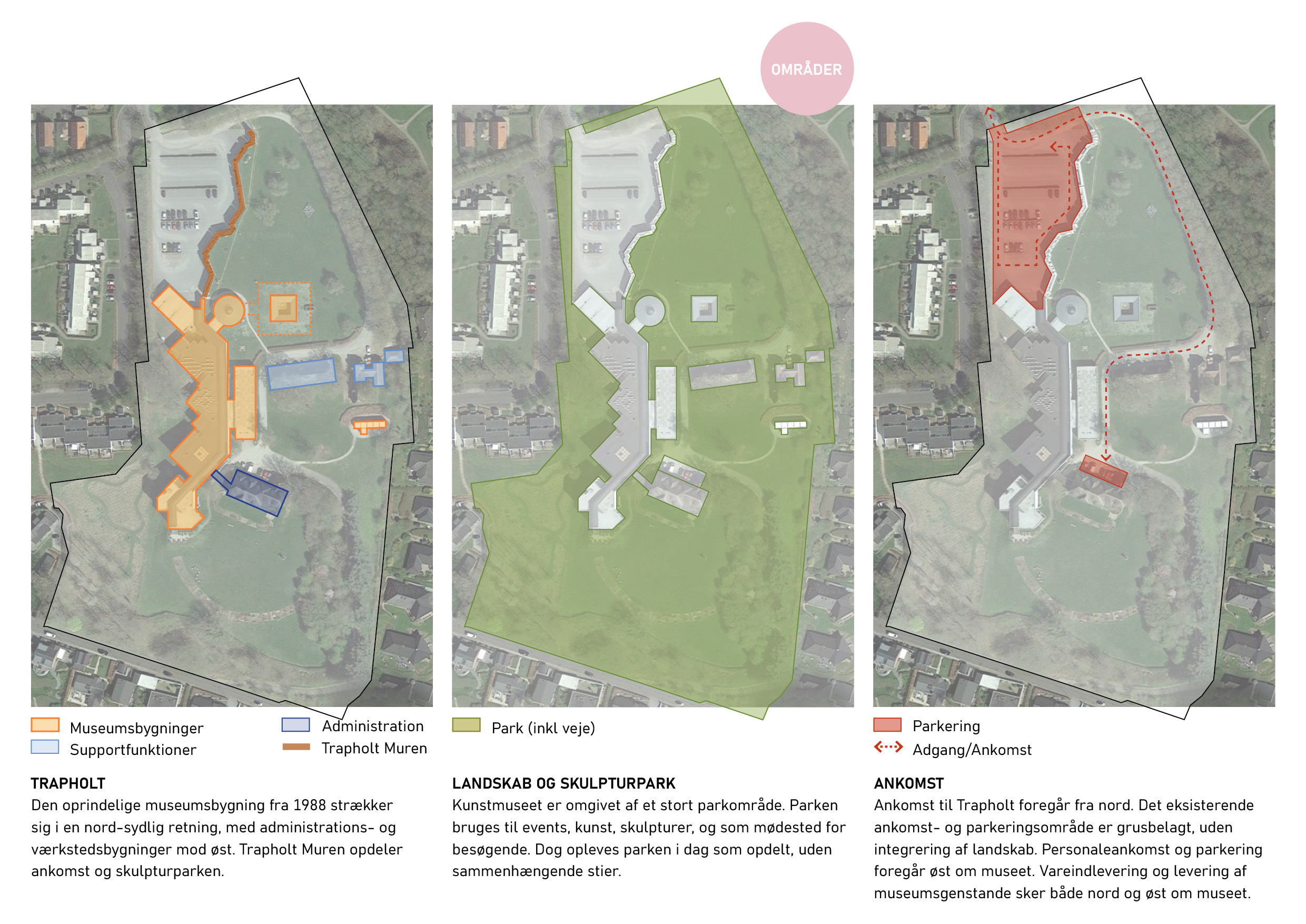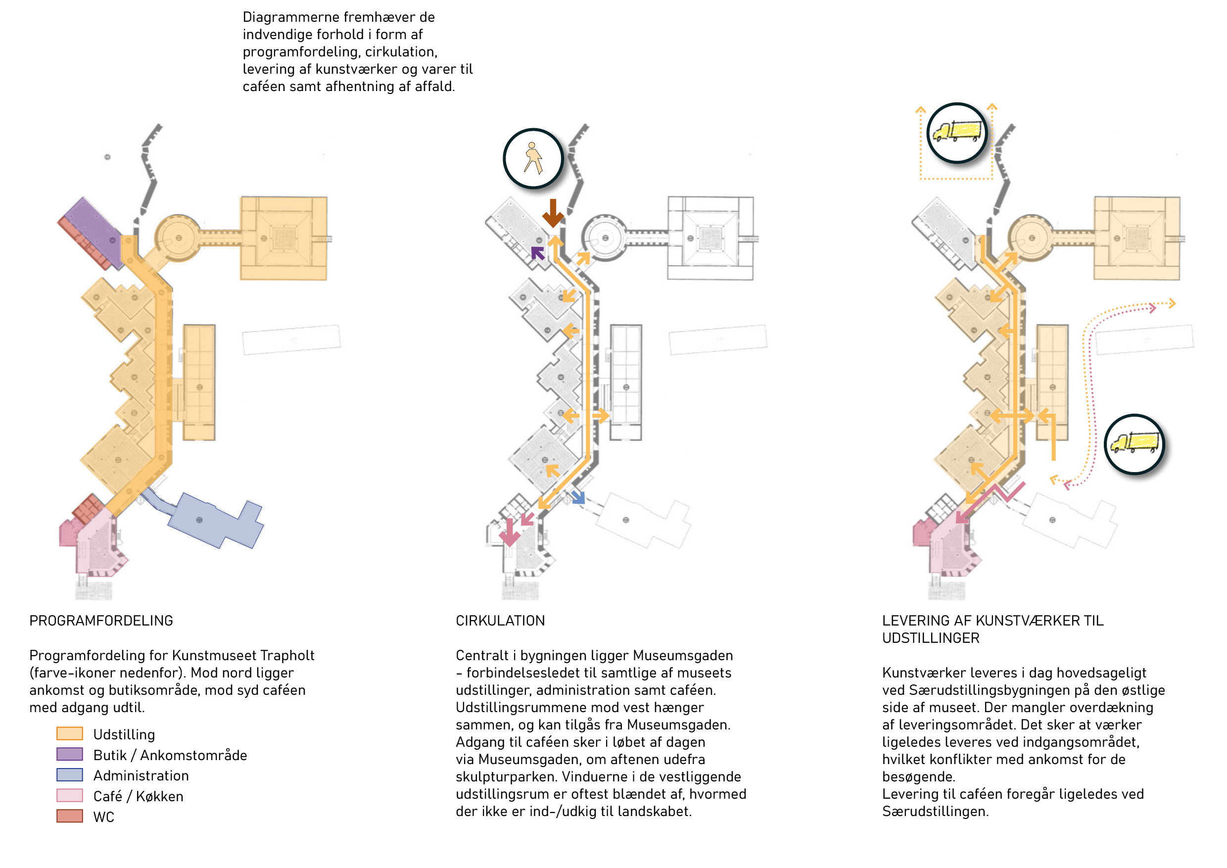Analyse af Trapholt samt tilhørende skulpturpark og landskab er udført - både udvendige samt indvendige forhold, i form af cirkulation og flow. Illustration: mejeriet.