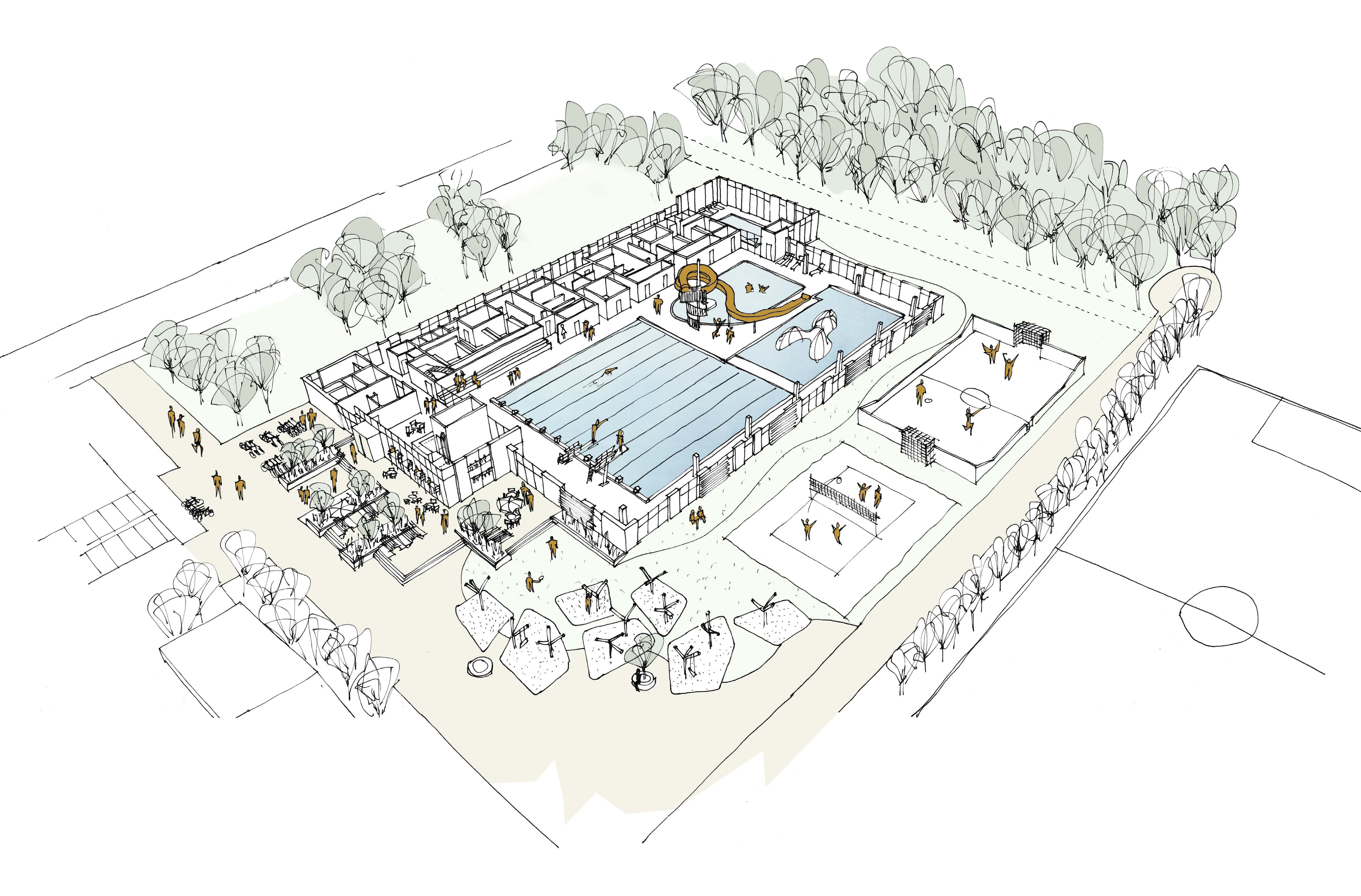 Tegnestuen Mejeriet er bygherrerådgivere for Tårnby Kommune i forbindelse med opførelsen af en ny svømmehal. Svømmehallen er indrettet med en bred vifte af faciliteter. Børne- og familiefaciliteter med morskabs- bassin, rutschebane og vandaktiviteter. Udspringsfaciliteter fra både 1 m og 3 m vippe, en 4 m høj klatrevæg, 10 baner a 25 m hvor 4 af banerne kan udvides til 50 m via en hæve-/ sænkebro og der er varmtvandsfaciliteter i aflukket område.